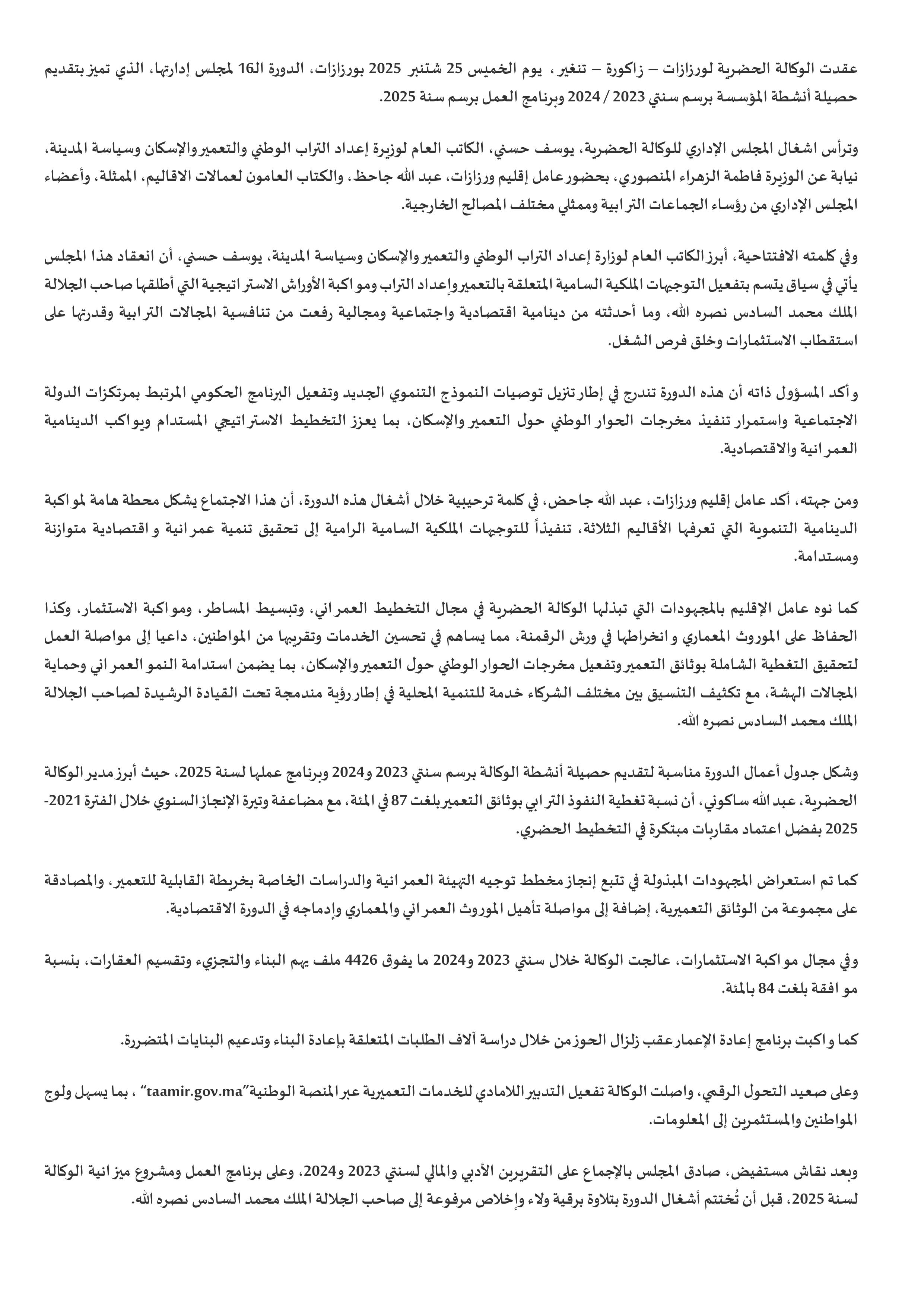 الدورة السادسة عشرة لمجلس إدارة الوكالة الحضرية لورزازات - زاكورة - تنغير
