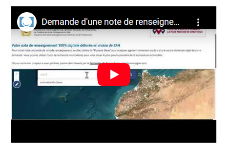 Nous vous informons qu’un nouveau e-service d’octroi de la note de renseignement urbanistique est maintenant disponible au niveau du Géoportail National « taamir.gov.ma » :